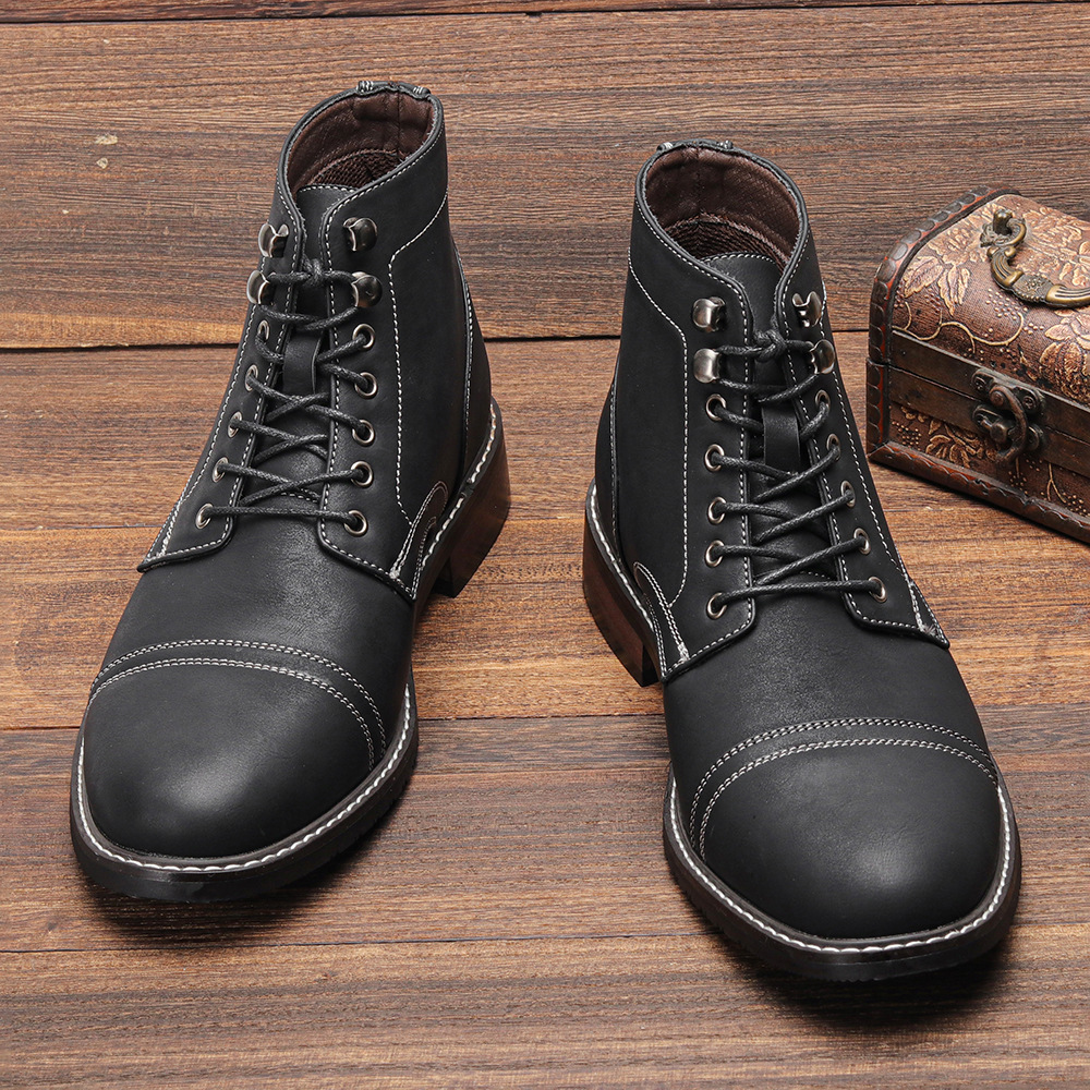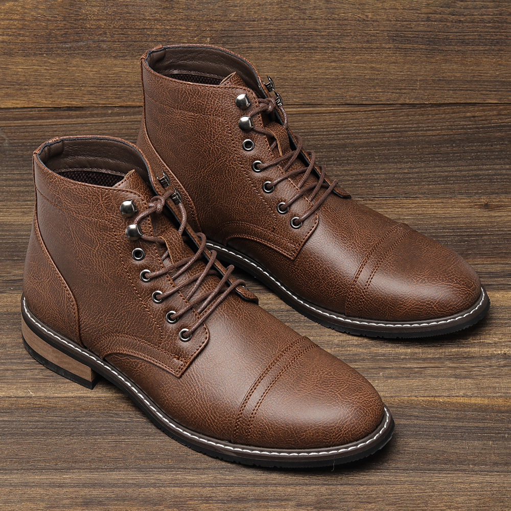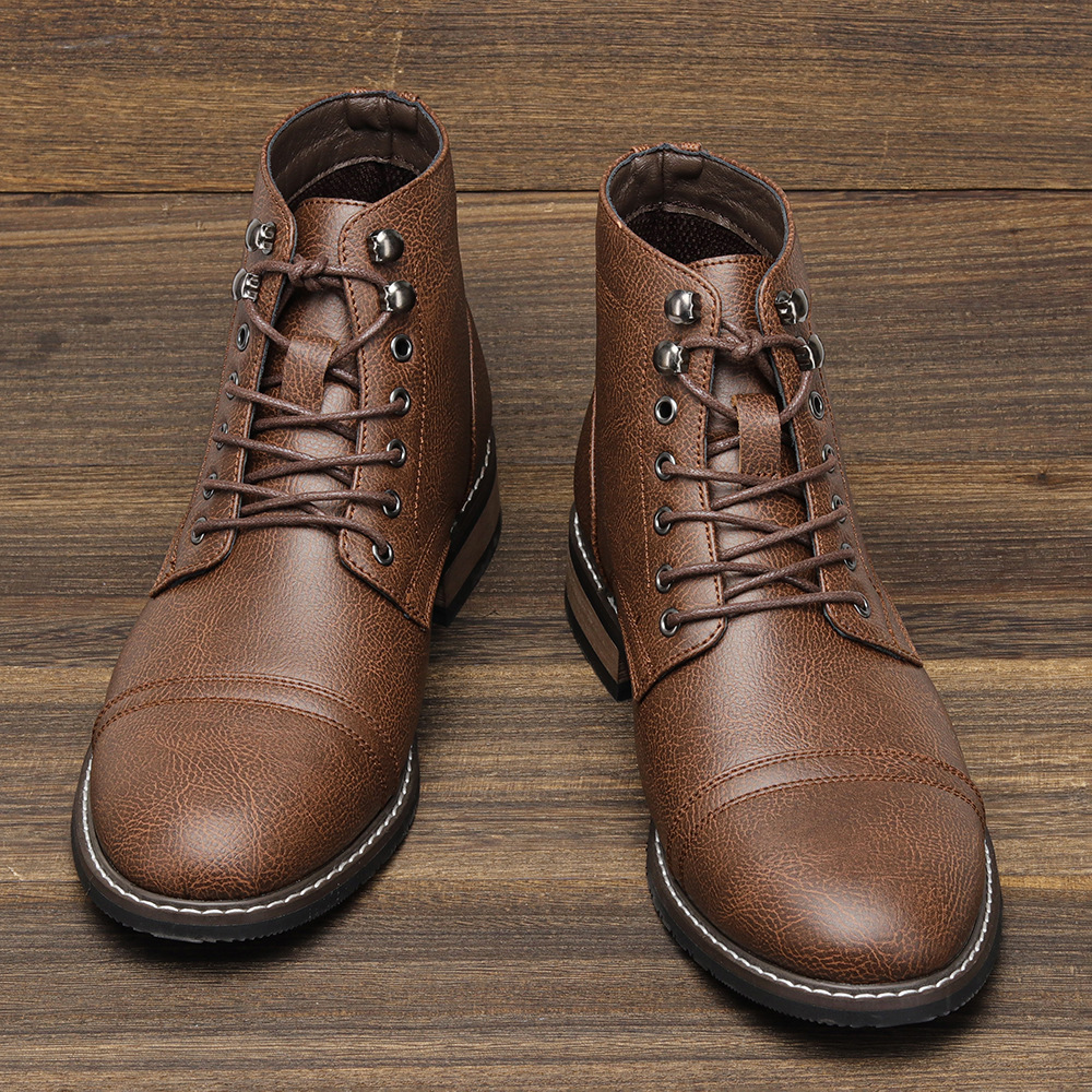 Product information: Pattern: Solid color Inner material: PU Heel height: Low heel (1–3 cm) Boot shaft height: Mid-calf Heel shape: Wedge heel Outsole construction: Bonded sole Outsole material: Rubber Trendy elements: Stitched paneling Style: Men’s boots Thickness: Standard thickness