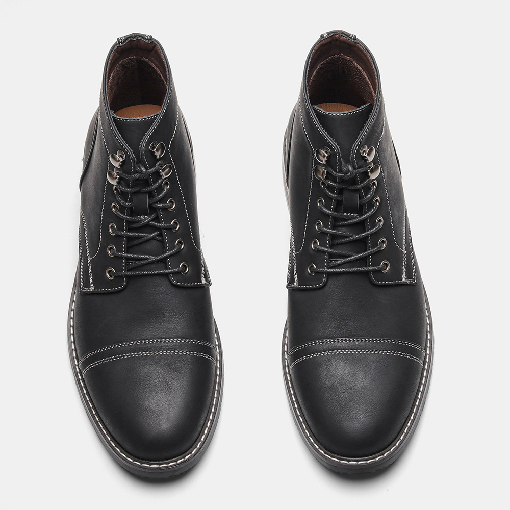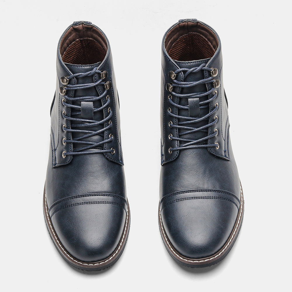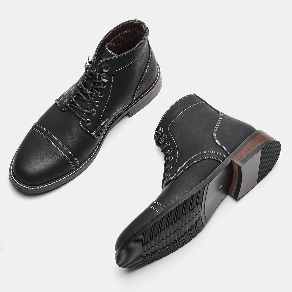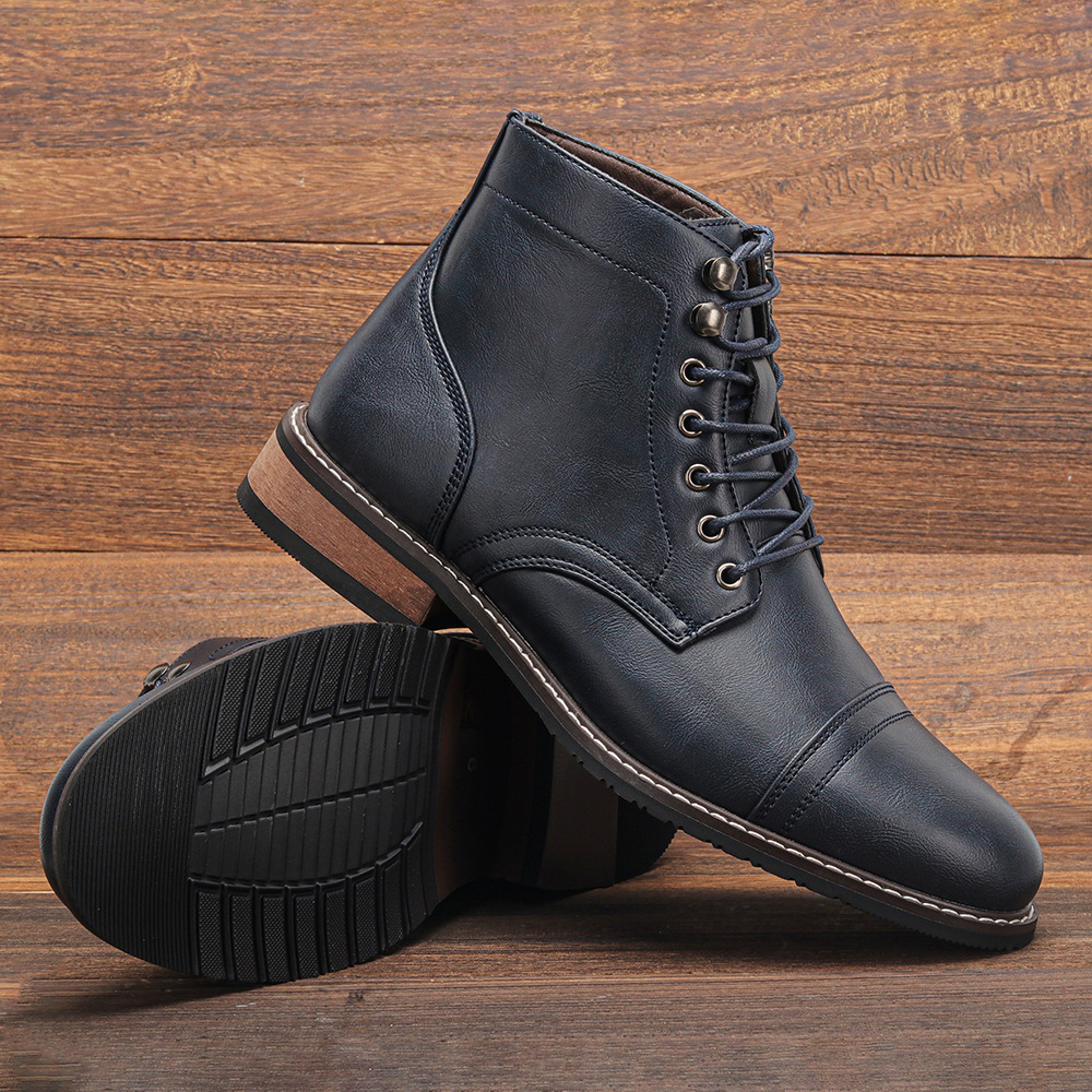 Product information: Pattern: Solid color Inner material: PU Heel height: Low heel (1–3 cm) Boot shaft height: Mid-calf Heel shape: Wedge heel Outsole construction: Bonded sole Outsole material: Rubber Trendy elements: Stitched paneling Style: Men’s boots Thickness: Standard thickness